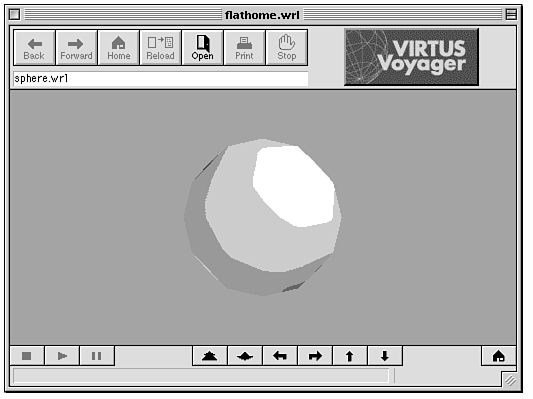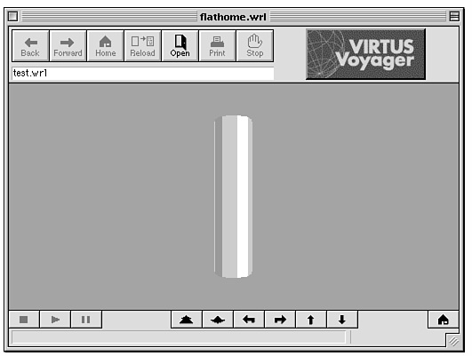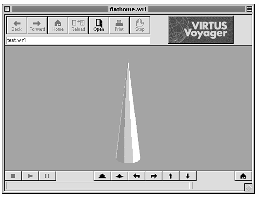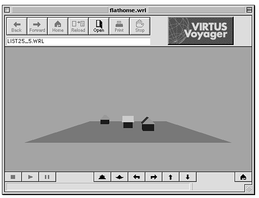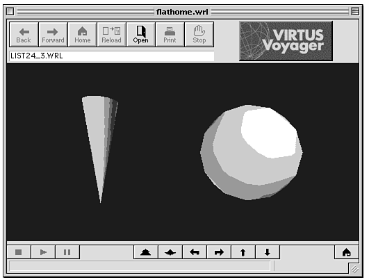 The VRML world would then be loaded into a helper application designed to give the user access to the VRML world, including controls for manipulating the VRML graphics in 3D (see fig. 24.2). Double-clicking different objects will generally send a command back to the browser, which can then move on to another URL.