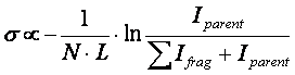 The fragmentation cross-section which in this case is the lower bound of the integral collision cross-section is obtained by normalizing the total intensity of ions by the intensity of the parent : |